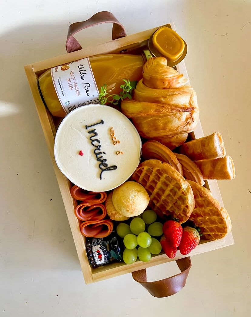 Cesta de aniversário em Campinas com bolo bento cake personalizado .
