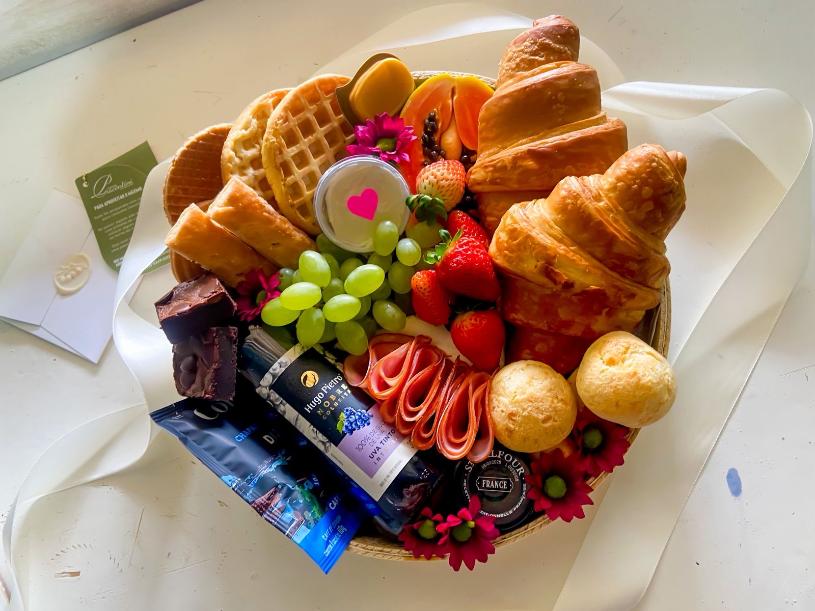 toque de carinho:Todas as nossas cestas acompanham um cartão exclusivo, escrito à mão com sua mensagem especial, — porque presentear é também encantar.